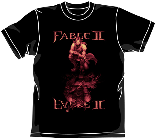 主人公の行動によって容姿が多彩に変化するFableIIを象徴するかのようなイラストを使用したデザインのTシャツ。善人のキャラも悪魔のキャラも元は同じキャラ。あなたの本質が投影される一枚!!