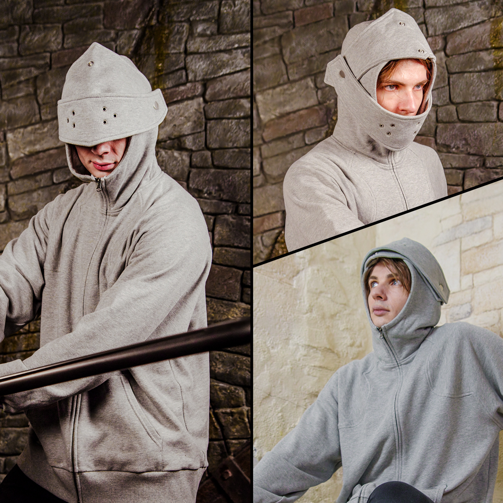 フードをかぶれば西洋甲冑スタイルに。
