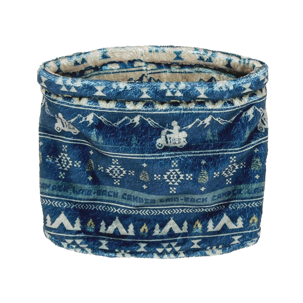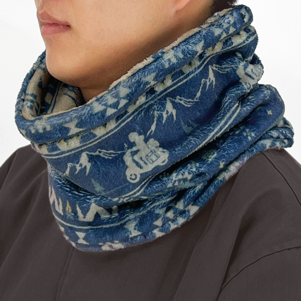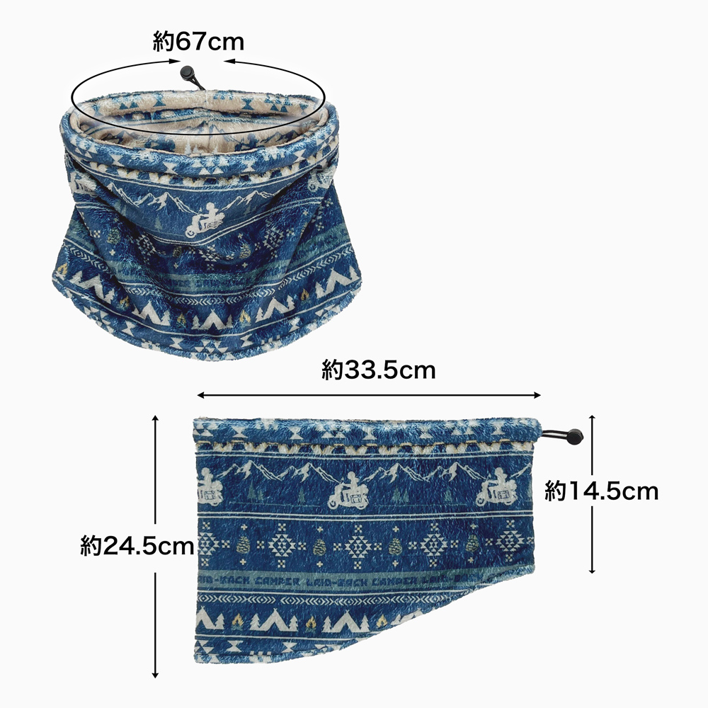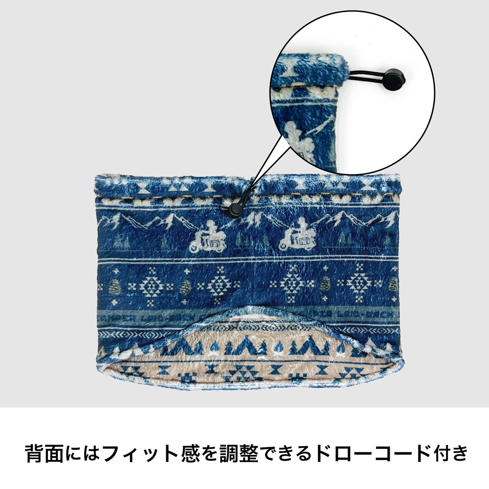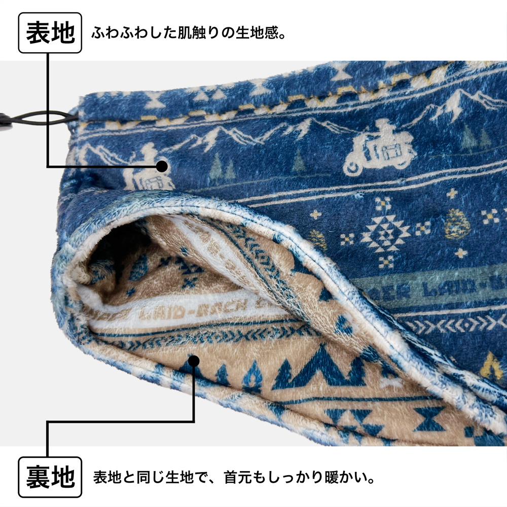 ・志摩リンをイメージしたデザイン。キャンプに関するモチーフをちりばめたネックウォーマー。