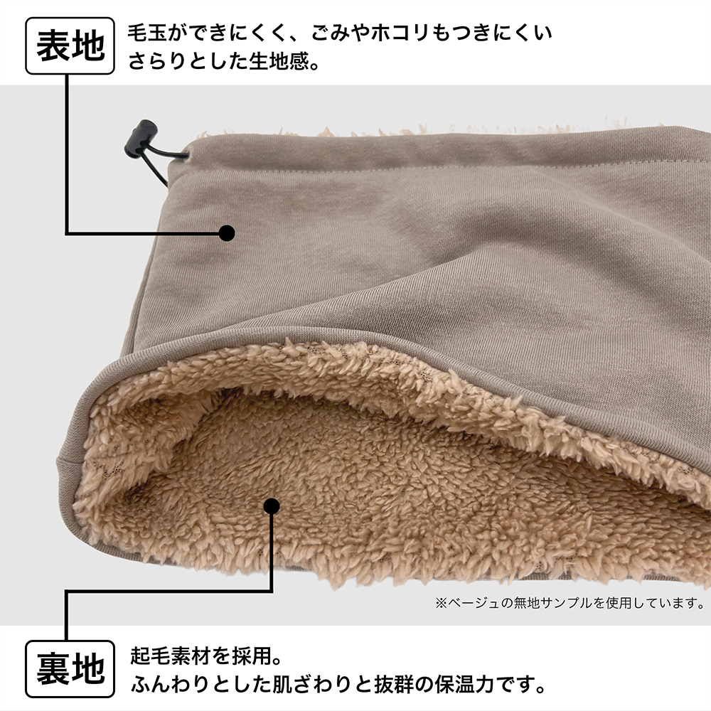 ・裏地(肌に触れる面)は起毛素材を採用。ふんわりとした肌ざわりと抜群の保温力で、寒い季節の外出を快適にサポートします。